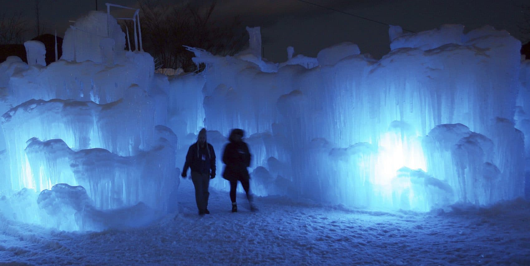 People tour an ice castle in Lincoln, New Hampshire in 2014. (Jim Cole/AP)