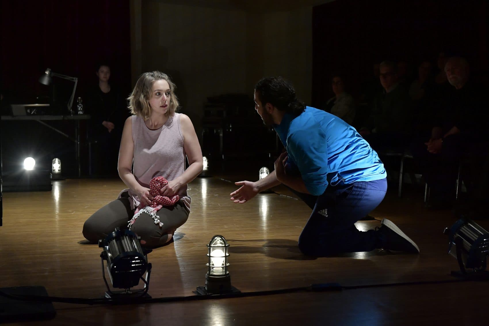 “The Last Act” is jarring, which it’s meant to be. But it’s also jarred by its collision of biography, improv, political argument and shady flights of poetry, philosophy and even whimsy. Nonetheless, Israeli Stage founder and artistic director Guy Ben-Aharon makes a case for it, helming an urgent, intimate staging on a strip of playing space with audience members facing one another from opposite sides. Among the cast, Annelise Lawson is an aptly teasing Gilly, Marianna Bassham an even more provocative Dana, Louis Abd El Massih an angry, yearning Djul, and Craig Mathers an explosive Ethan jumbling personal feelings with what he regards as an almost holy governmental calling.