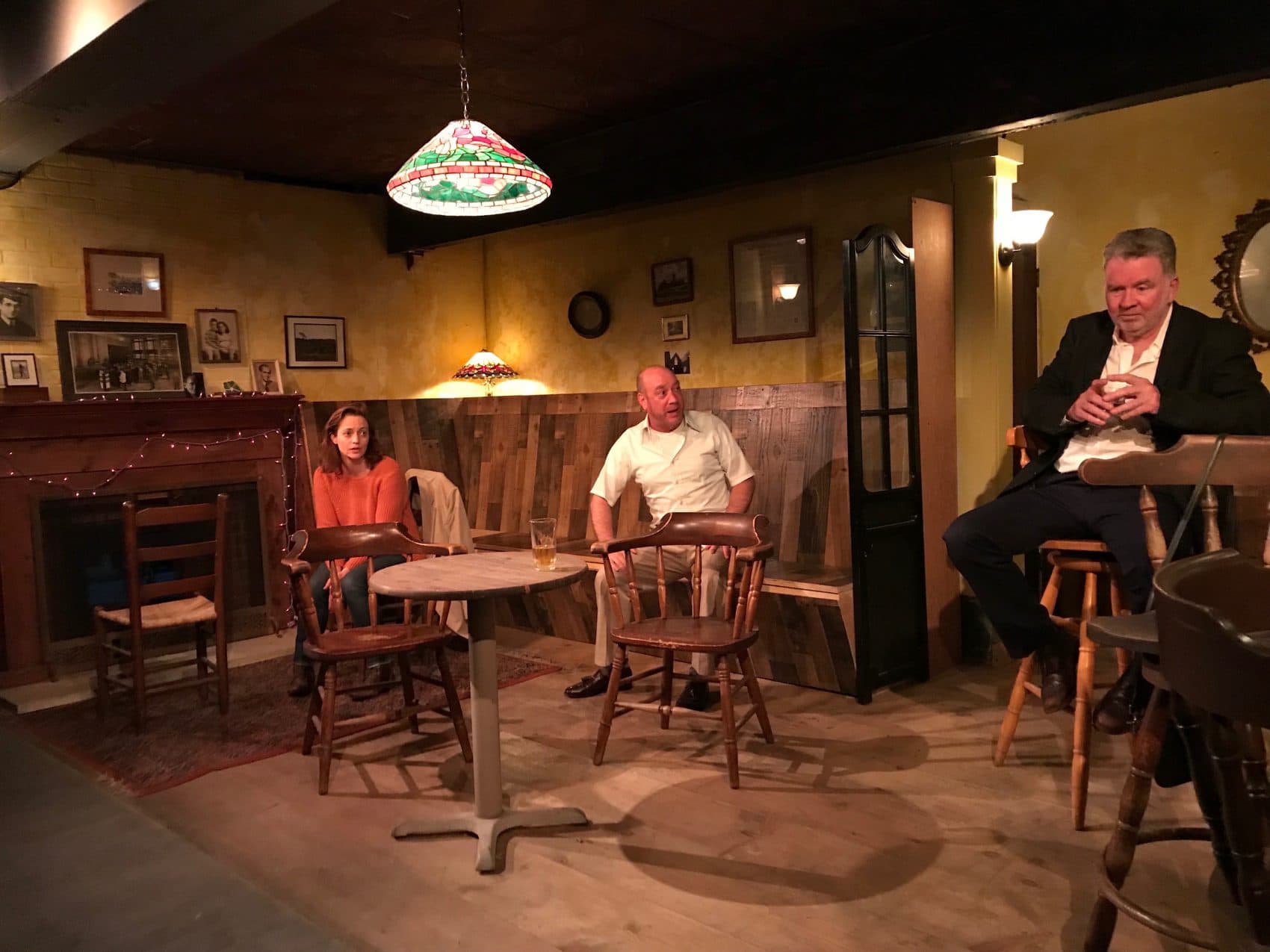 The acting company has a guest in its midst as well, Gabriel Kuttner, who has become a quality fixture in Boston’s acting community and here he invests the manipulative Finbar with more humanity than I’ve seen from others in the part. Stacy Fischer is always superb and I’m not sure she’s ever been better as the sad-eyed Valerie, who centers the play so richly in the real world with her story. She also shares in a comic scene that shows the ensemble and Kropf at their funniest when the men stare at her agape after she asks for a white wine, perhaps the first wine drinker ever at the pub.