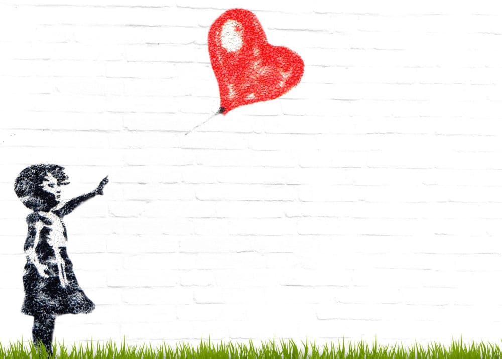 "Girl With Balloon," which depicts a small child reaching up toward a heart-shaped red balloon, was originally stenciled on a wall in east London and has been endlessly reproduced, becoming one of Banksy's best-known images.