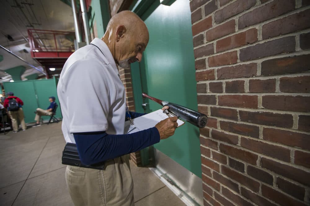 At Fenway Park, the authenticators sit in front-row seats on the third base side, about 30 feet from home plate. The seats are so close to the action that you can clearly hear the ball pop into the catcher’s mitt. More importantly, from their vantage point, the authenticators can clearly see all the action on the field, especially at the plate where they keep an eye on game-used bats and balls.