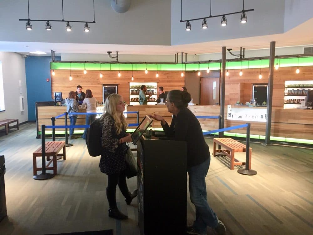 The sales floor looks more like a bank branch than something out of a Cheech and Chong movie. Medical marijuana patients, who don't have to pay tax, will be directed to the left. Recreational patients will be directed to the right, after being handed a menu with pictures of giant buds known in the business as "flower."