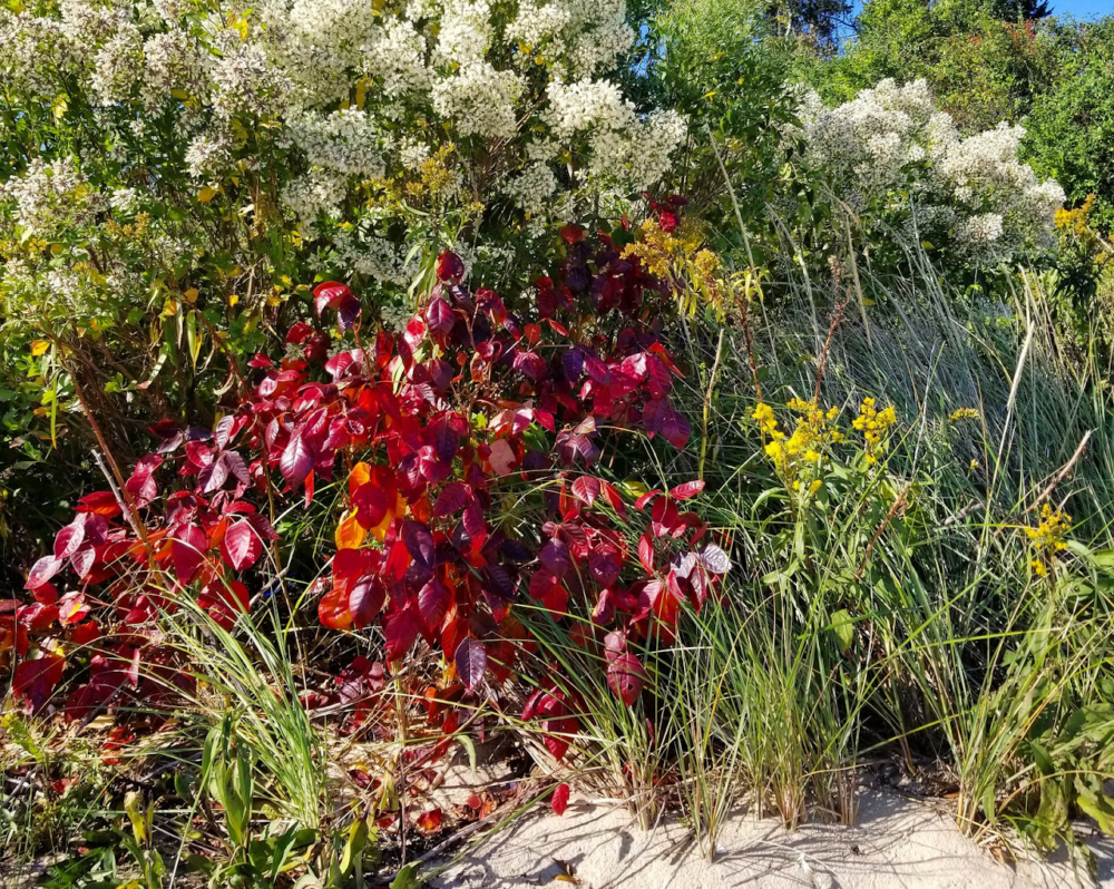 There are a couple of hazards during the fall to think about. Poison ivy, which is ubiquitous across the area, will change to a brilliant red in autumn if it's exposed to sun.