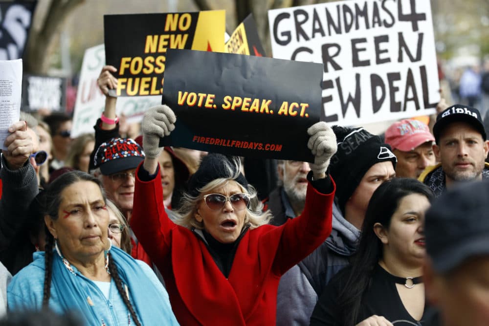 Actress and activist Jane Fonda protests climate policies and President Trump outside the White House on Nov. 8. (Patrick Semansky/AP)