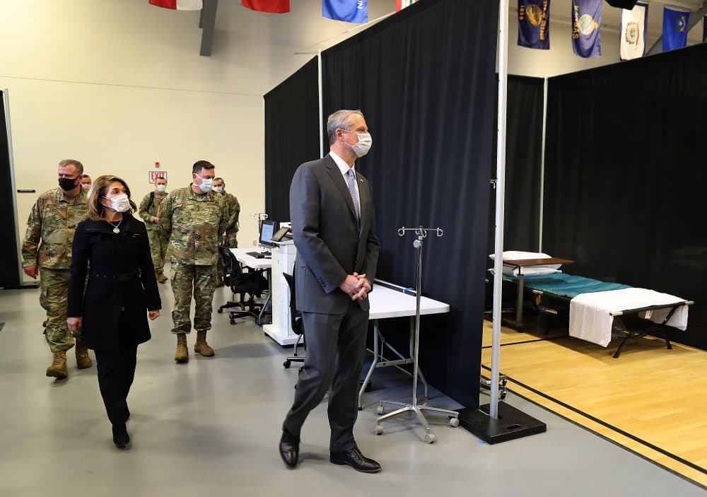 He said a 95-bed field hospital in a UMass Lowell recreation center, a partnership with Lowell General Hospital, is on track to open Monday, and work on a 140-bed site at UMass Dartmouth will be finished up this week.