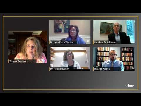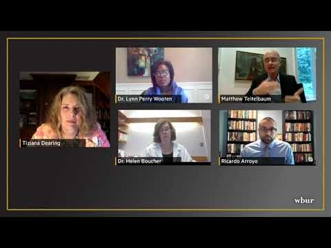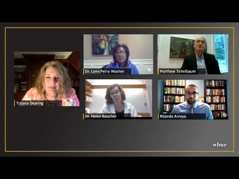 Radio Boston host Tiziana Dearing led the conversation with Dr. Helen Boucher, chief of the Division of Geographic Medicine and Infectious Diseases at Tufts Medical Center; Dr. Lynn Perry Wooten, president-elect of Simmons University; Matthew Teitelbaum, director of the Museum of Fine Arts; and Boston City Councilor Ricardo Arroyo.