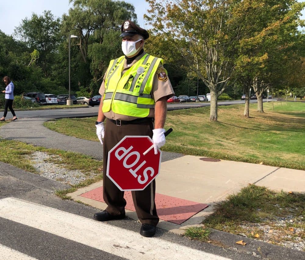 "It's good to get back and see the kids smiling again," said crossing guard David Hadley, who noted the small number of walkers and cars at drop off. "Today was a breeze."
