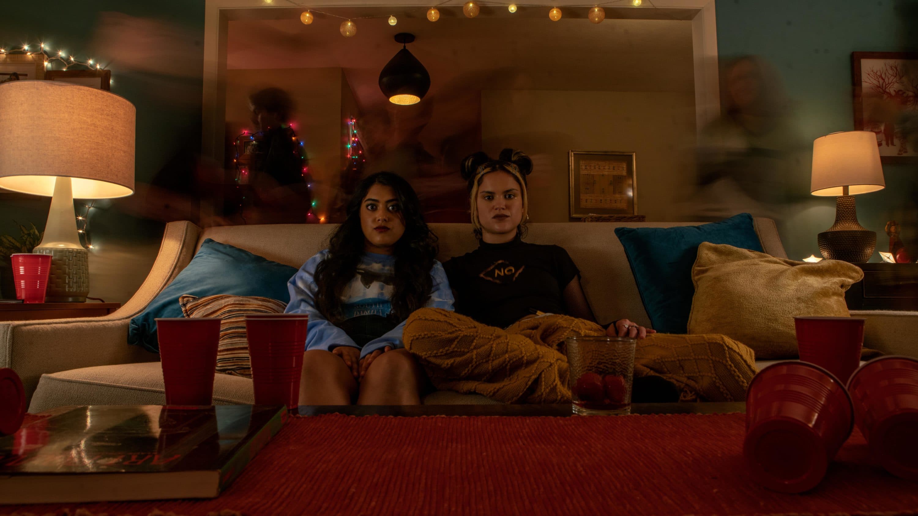 Her only friend is Lupe, who with her punk-rock fashions and streaked hair chafes against her devoutly religious household, waiting until she gets out the door before attaching her clip-on nose ring. It’s a star-making performance by former Disney Channel kid Victoria Moroles, who gets a shot in at her former employer when she describes what used to be “Netflix and chill” as “Disney Plus and thrust.” Lupe’s the chaos agent here, inviting their entire class over for a party when Sunny’s mom is out of town on a work trip. The idea is getting her best friend drunk enough to finally make a move on her crush, a moppet-haired teen (Michael Provost) so sensitive he plays hockey in a cardigan. Alas, things fall apart rather spectacularly and Sunny instead ends up surrendering her virginity to the school’s most annoying evangelical Christian, who after some initial confusion as to what goes where, promptly finishes fast and runs home to pray.