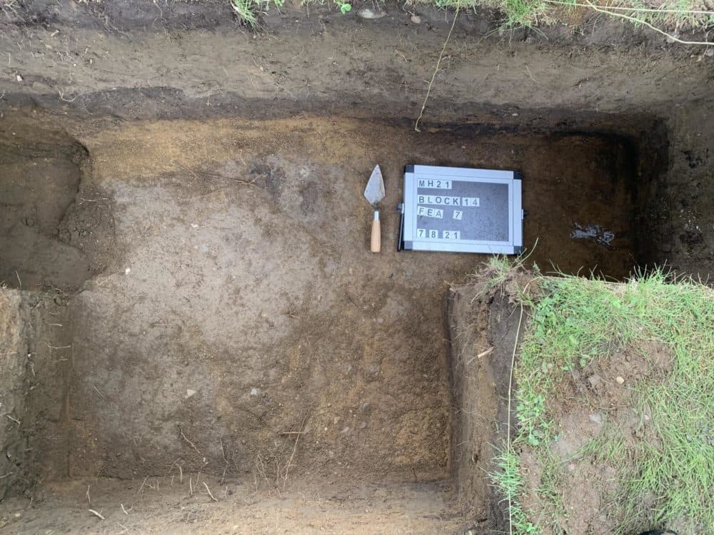 This did not turn out to be the trench. But they did find it the next day — a straight sided, flat-bottomed trench, near where a survey shows the meetinghouse would have stood.