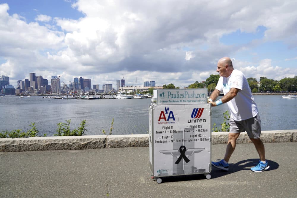 He plans on pushing the cart — decorated with photos of all the 9/11 airline crews for inspiration and courage — to ground zero by Sept. 10.