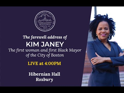 Boston's Acting Mayor Kim Janey delivered a farewell address on Wednesday in Roxbury's Hibernian Hall.