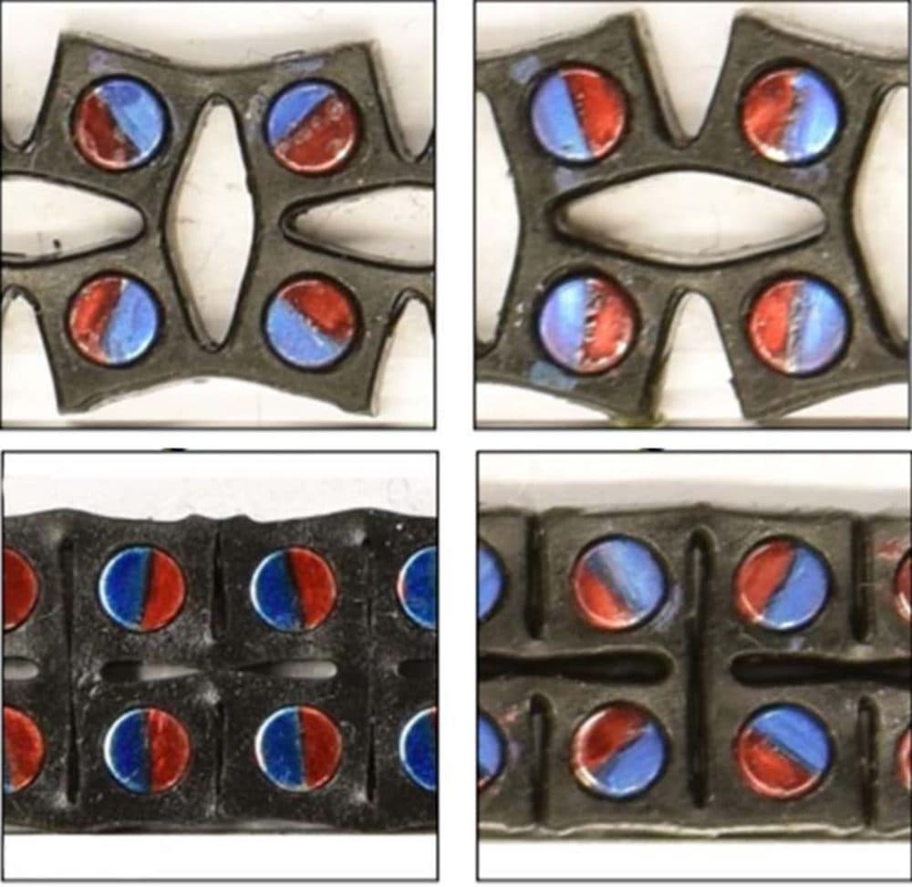 The base material is a type of elastic rubber with specially placed magnetic beads, Crosby said. The collapsing and pulling apart of those magnets absorbs and releases energy.