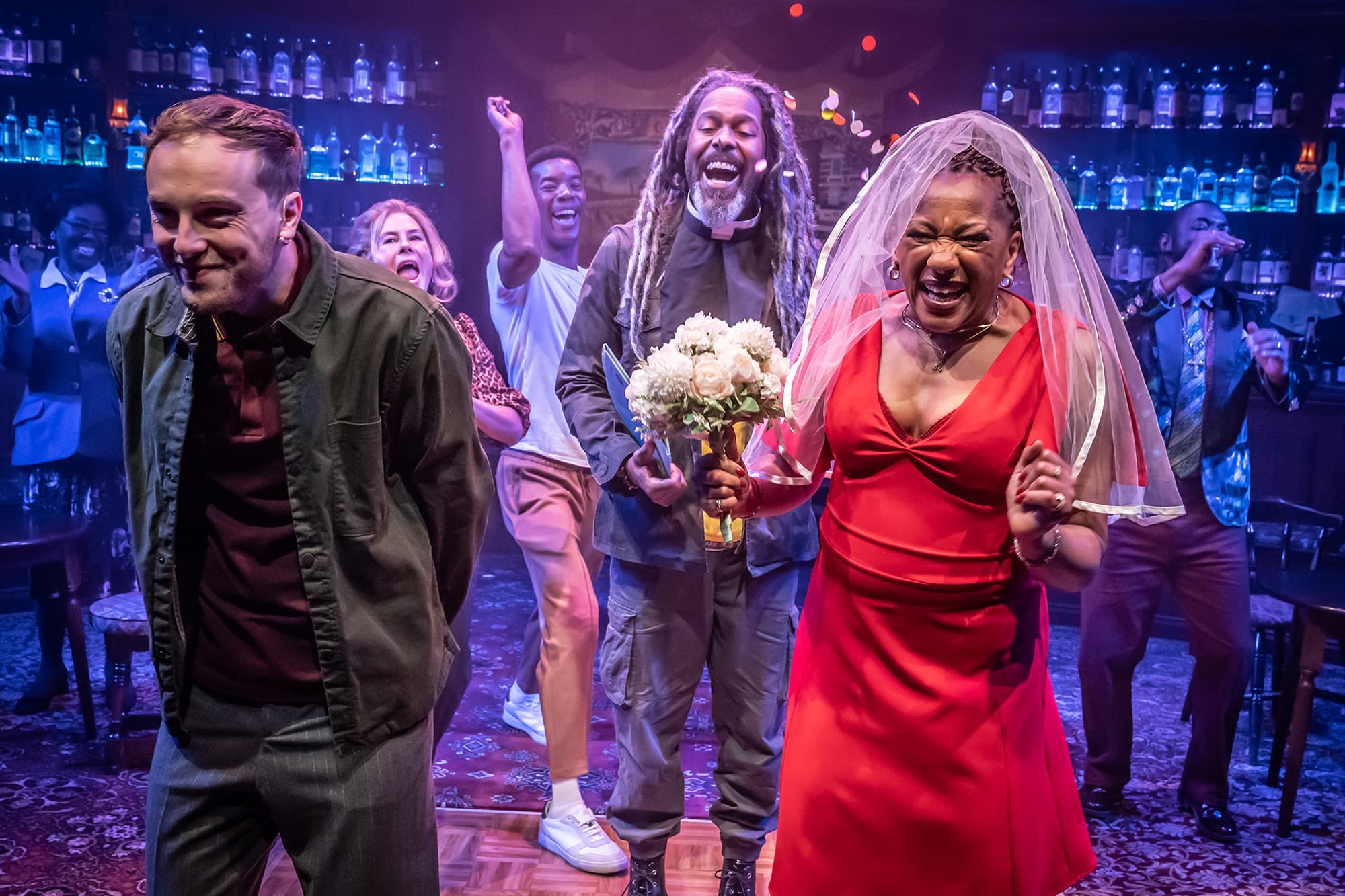 The gifted Clare Perkins as Alvita leads a talented ensemble who portray various colorful characters from a very religious aunty to a bubbly ride-or-die bestie to a Polish bailiff. Perkins has had a long career onstage — starring in “The Hounding of David Oluwale” about the death of a Black man by police and “Sweat” — and on television in “The Outlaws” and “EastEnders.”