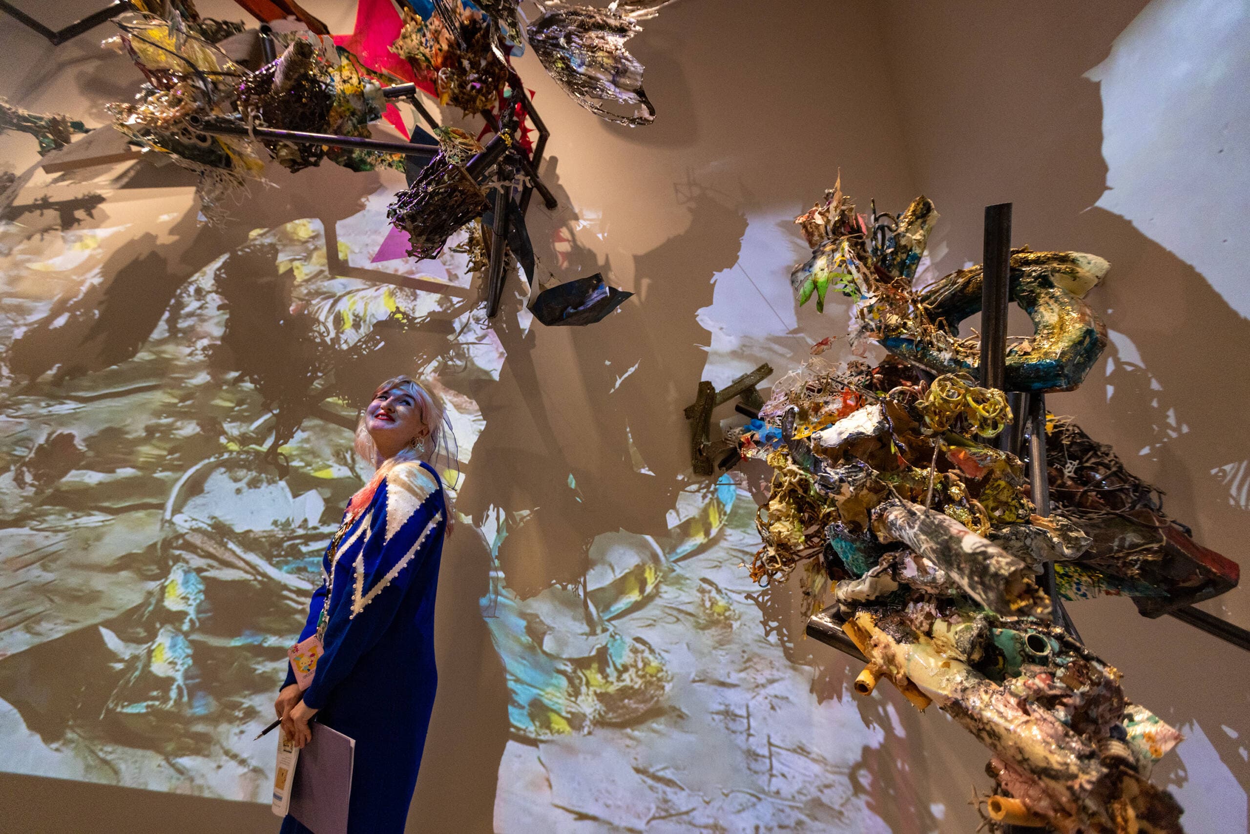 “She takes days and days, hours and hours to fasten them on drywall with T-pins, a mallet and little fasteners,” DeBoer explained. “This work is beautiful, it's immense, it's grand and gorgeous – but also turbulent. It's swirling and whirling and suggestive of things that just leave you in awe.”