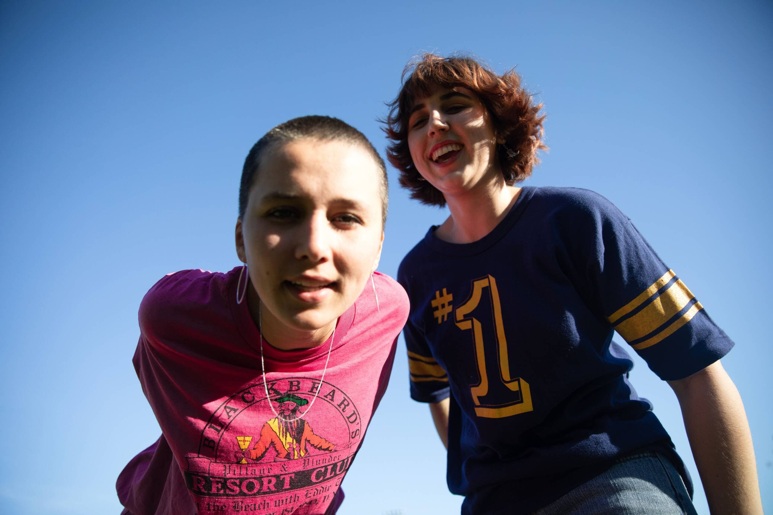 Their bond translates in the unadulterated fun of their music videos and meticulously crafted aesthetic. Martin, who studied film production at Emerson, spearheads this creative vision with the help of her production partner Ginger Port (together they form Bowie Nix), with input from Torrison. Their videos are a staple of the band’s identity, and each reveals that they’re students of the art. They quote Sleater-Kinney’s “You’re No Rock And Roll Fun” and The Breeders’ “Cannonball” as Mediocre canon. In the video for “To Know You’re Screwed is to Know a Lot,” the duo don a couple of Charlie Chaplin-esque suits and flee from an imaginary foe in the Park Street subway station. After leap-frogging downtown, Martin ultimately dies on the train tracks in Torrison’s arms. It’s a narrative that cultivates a blend of ‘90s camp, quirky slapstick and amusing twee.