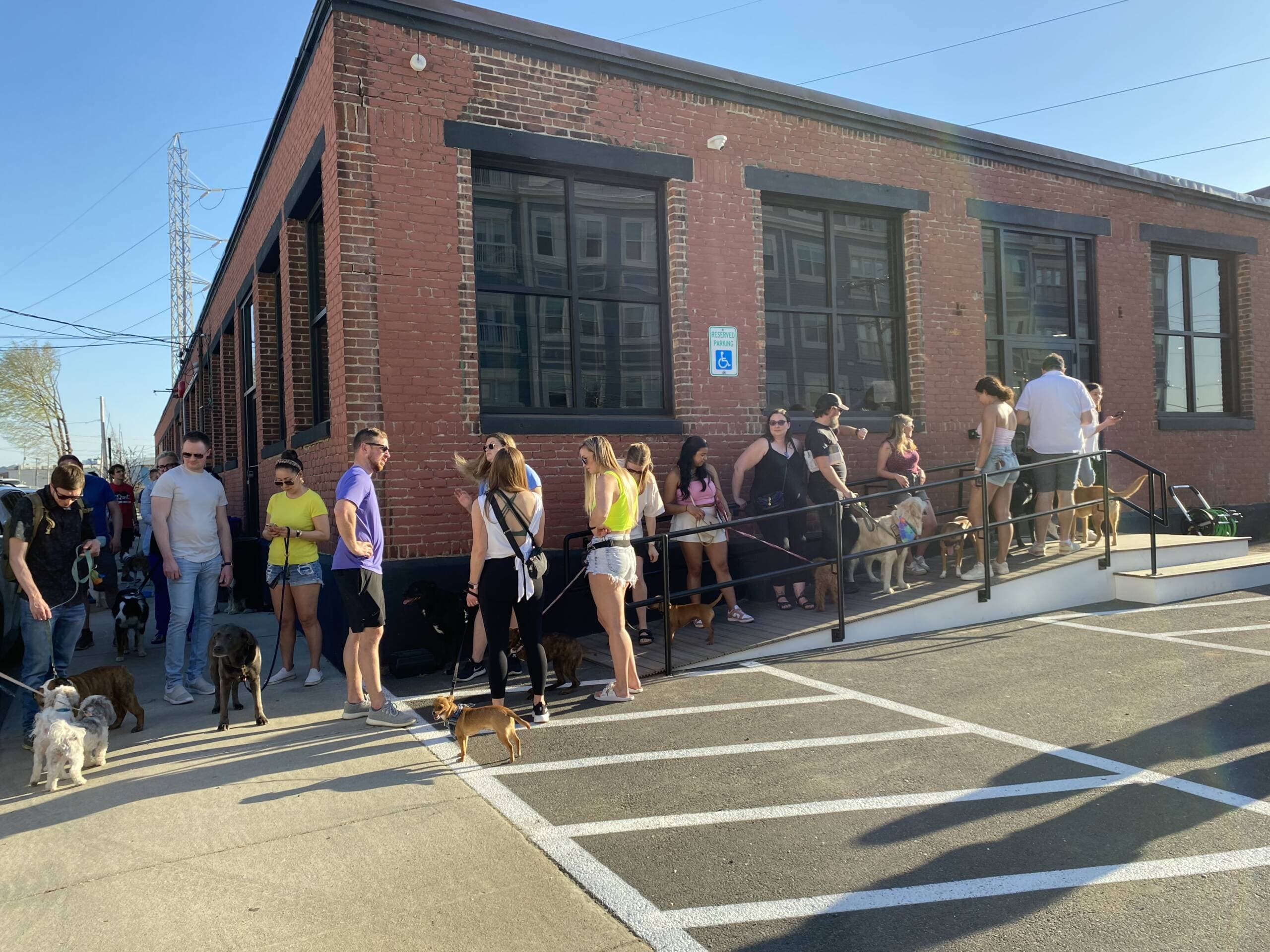 On opening day, pet parents waited outside Park-9 in a line that stretched down the sidewalk. Lauren Dicredico, who lives around the corner, walked over with her 6-month-old brindle pit bull named Roxie. “I used to live in Denver, and everywhere allowed dogs,” Dicredico said. “So now there's a spot here to bring your dogs that's indoors, not just outdoors.” Her new puppy is always full of energy after spending time in her crate, “and I just want to be able to take her out with me. Plus, Boston has crappy weather, so we can do it in the winter.”