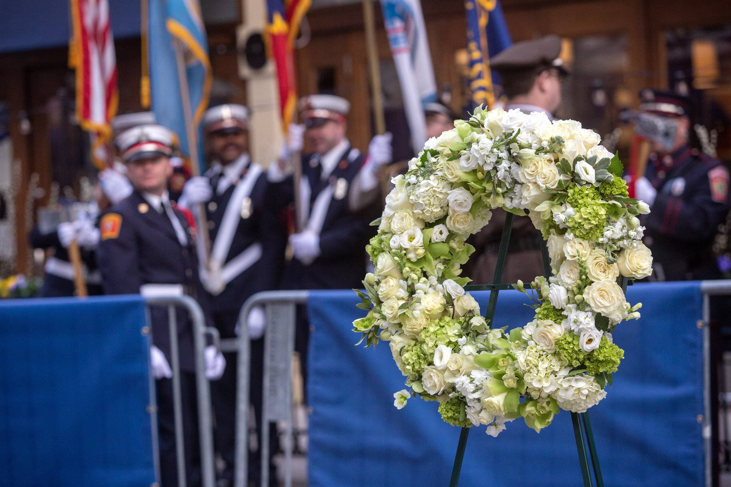 Boston Mayor Michelle Wu, who was making her first run for City Council when the bombing happened, joined families who lost love ones at a brief early morning ceremony Saturday at the two memorials at the site of the explosions. Gov. Maura Healey also participated in the somber and silent remembrance. A white wreath and a ring of daffodils were placed in front of each memorial.