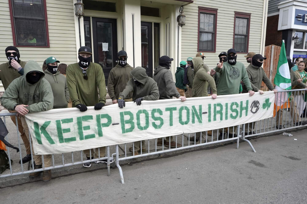 Patriot Front is a Texas-based white supremacist group, but the ADL said it has become "increasingly active" here due to Massachusetts' connection to the founding of the United States. Members marched through downtown Boston last July, displaying flags, riot shields and banners that read "Reclaim America" and "Strong Families Make Strong Nations."