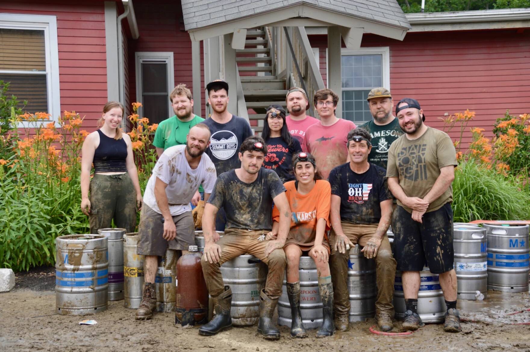 Orion Jones stands near the back door of the Main and Mountain Bar and Motel. His work boots are covered in sludge and mud is spattered across his T-shirt. “Yesterday we were just focused on getting water out of this basement," he says, pointing down a nearby stairwell. "We’ve moved out a bunch of washer dryers and appliances, but most everything has had to go. So a lot of lifting!”