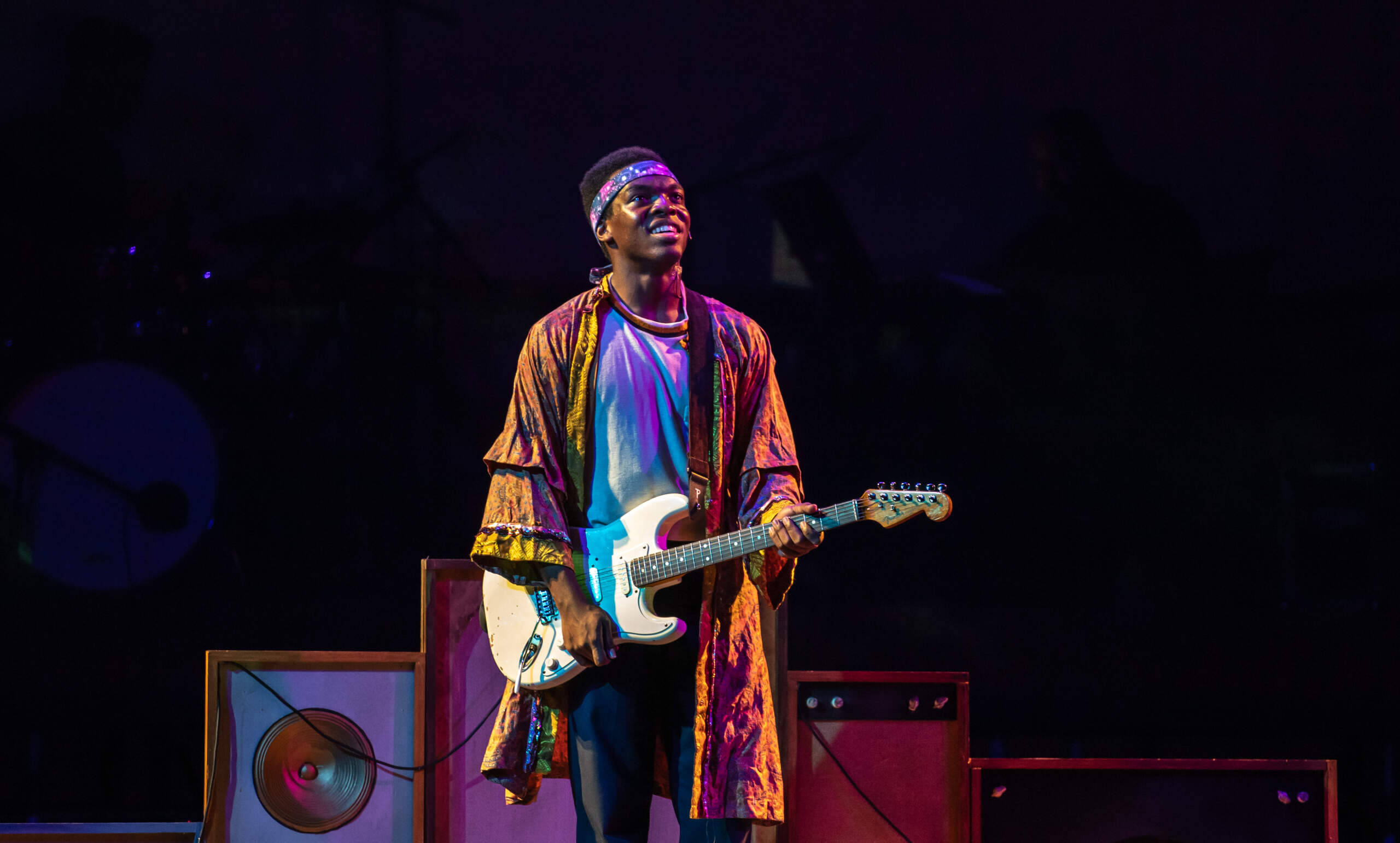 Martinez Napoleon as J Sonic cuts an imposing figure as he guides The Boy through musical ideas of harmony, disharmony and feedback as a response and an opportunity. We travel back in time with J Sonic and his backup singers The Feedback (Cedric Lilly, Yasmeen Duncan, Kiera “Kee” Prusmack, James Turner and Adriana Alvarez), all of whom morph into several roles, to find the boy’s connections to the sounds of his ancestors, including the blues of Muddy Waters and Koko Taylor; his grandparents’ work in vaudeville; and his parents’ love of music and dance. We are led through time and space with the help of original compositions by Divinity Roxx and Eugene H. Russell IV, which tap into the blues, swing and some iconic Jimi Hendrix Fender Stratocaster riffs, while providing transitions from one scene to the next.