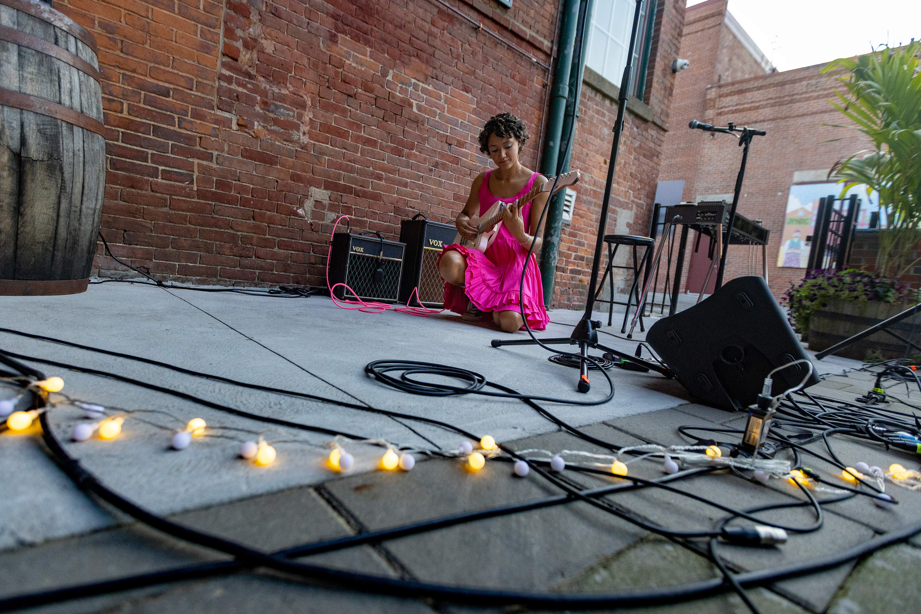 It was a blissful August evening at the Sam Adams Brewery in Jamaica Plain. Out on the patio, Kimaya Diggs took the stage for a short solo set. She wore a hot pink dress paired with high-top Converse sneakers, and picked out a dreamy motif on her (pink) electric guitar as she introduced her song “Letting Go.”