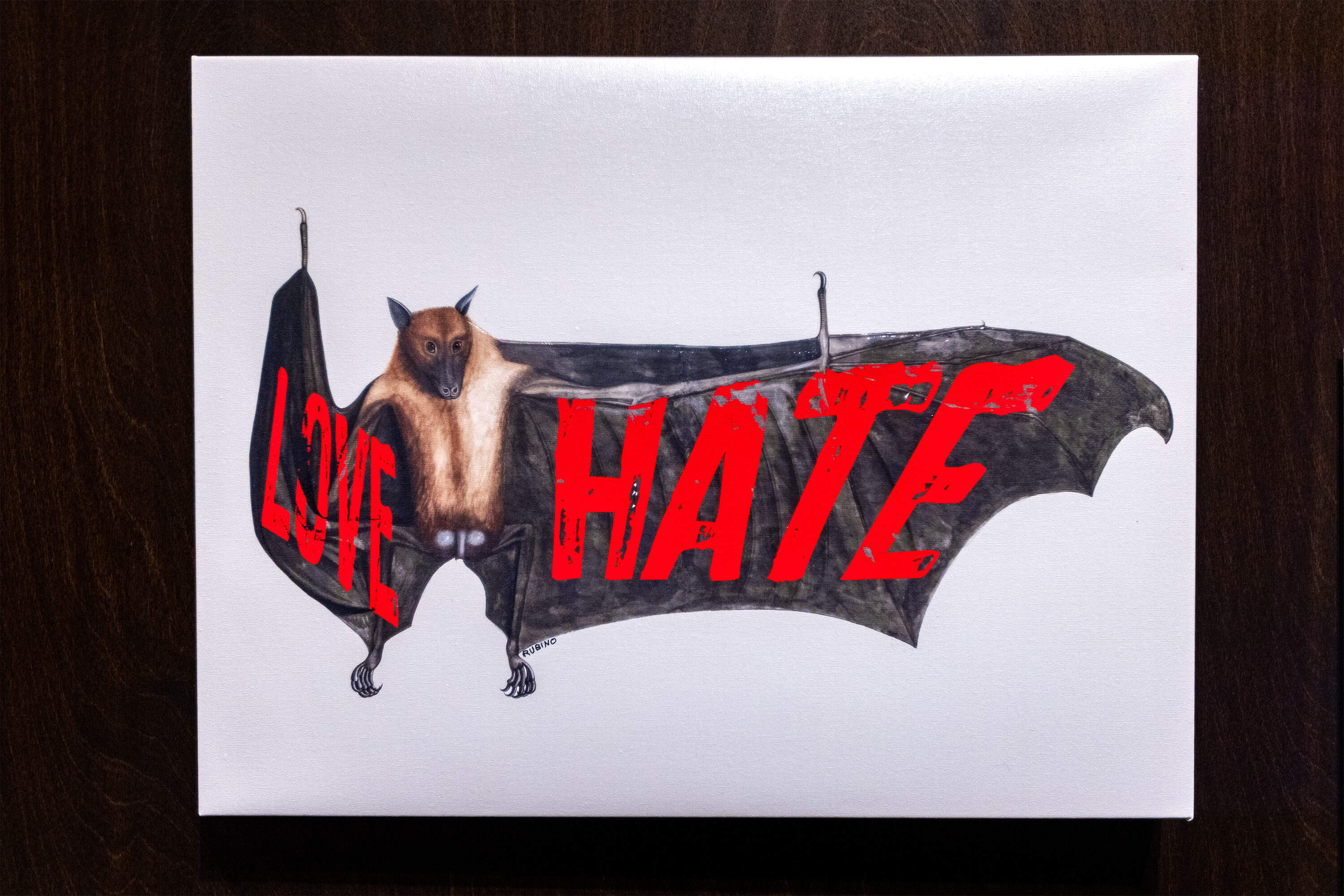 An atmospheric soundscape by David Yann Robert draws us into the gallery. It's filled with contemporary artworks, pop culture memorabilia, cultural artifacts and historical depictions. Some are from the museum's collection, others are part of a traveling conservation exhibition. Together, they illustrate how people have loved and hated bats through the ages.