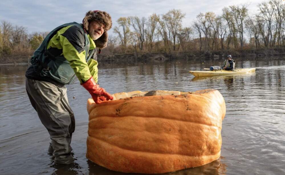 And more recently, on a much shorter stretch of the Connecticut, David Rothstein — a sculptor and environmental lawyer — set off to beat the world record for distance paddled in a pumpkin.
