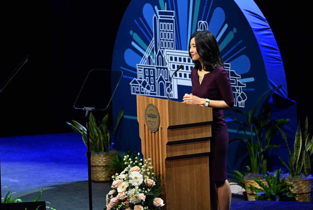 Speaking at the MGM Music Hall near Fenway Park, Wu touted her administration's efforts around combating addiction and homelessness, improving schools and pressing for more affordable housing in the city.