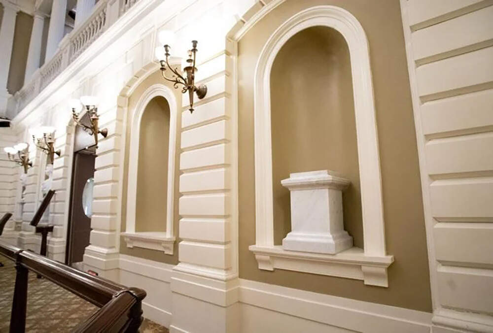 An empty pedestal meant for the Douglass bust is currently sitting inside the recently renovated chamber, where Senate President Karen Spilka said she intentionally left two alcoves vacant in her quest to enhance the diverse representation of historical figures in the State House. The other empty alcove will eventually be filled with a bust of a woman, and Spilka has previously floated the idea of selecting Abigail Adams.