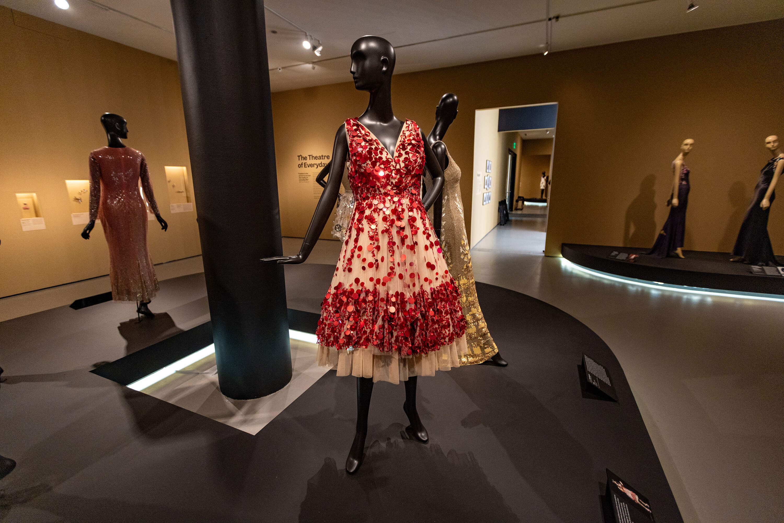 The show’s gallery is filled with lanky, glamorously-adorned mannequins, but MFA curator theo tyson was especially excited to introduce the one wearing a shimmering, beige dress adorned with red sequins.