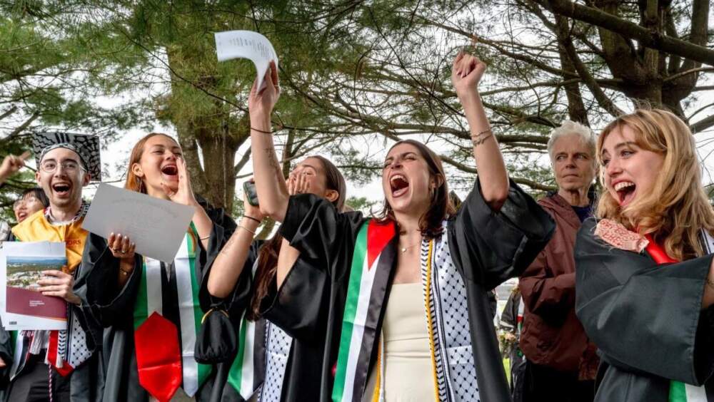 At UMass Amherst, protesters briefly halt graduation, hold their own unofficial ceremony