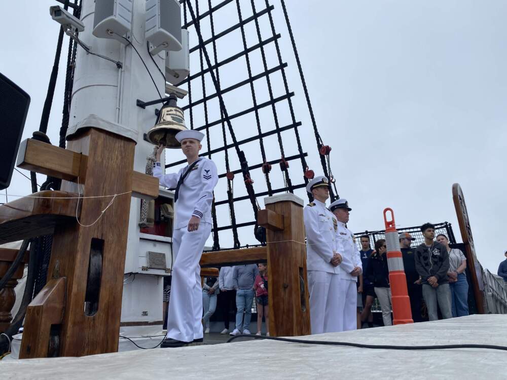 Servicemembers honored the 275-plus people who died while serving on the warship, the vast majority from illness and disease. Twenty-eight were killed in battle. As bells tolled, servicemembers read the names of the fallen.
