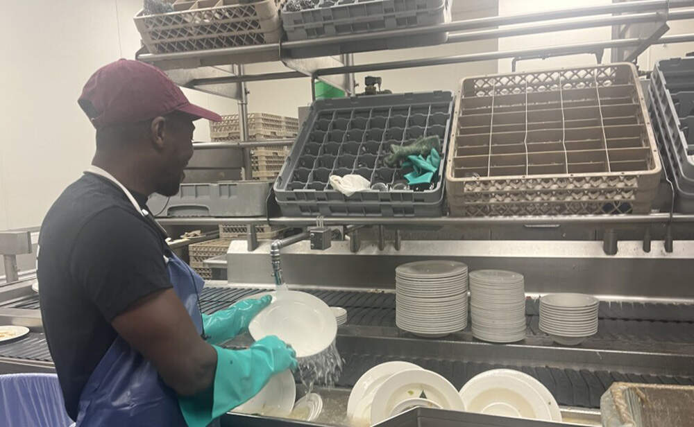 A few are working at UMass Amherst — like Matthew, who is a new dishwasher for the university’s main dining hall.