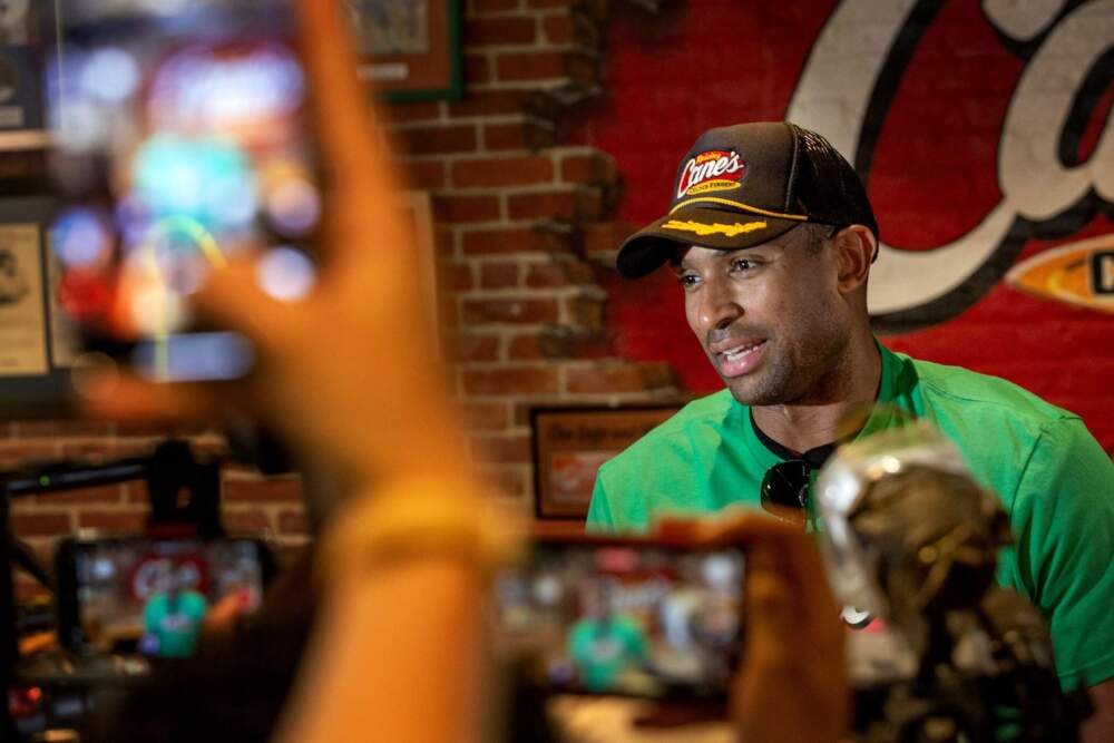 Hundreds of people lined up Thursday outside of the Raising Canes on Boylston Street and surrounded Horford as he arrived. Some, like 23-year-old Samantha Robinson, had been waiting outside since 8 a.m. to meet him.