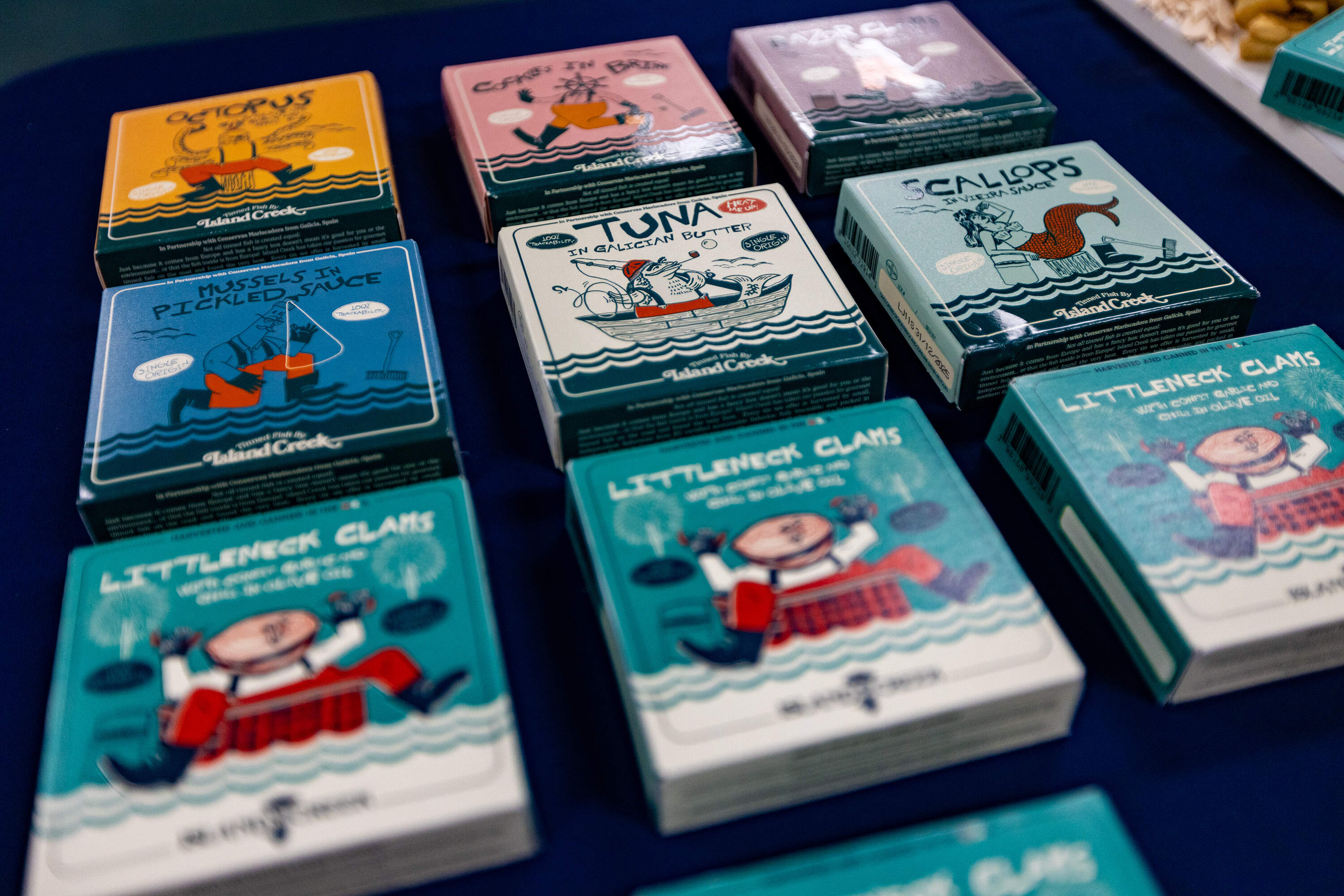 Island Creek staff first discovered the potential of tinned fish in 2017, when they sold it at The Shop, a seafood restaurant they run in Portland, Maine. Customers loved it. As they were researching what tins to carry and who made them, they traveled abroad to learn more about the process. It was on a trip to Spain that Sherman said he had an epiphany in a grocery store.