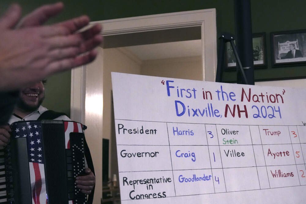 The tiny New Hampshire resort town of Dixville Notch has a tradition dating back to 1960 of being the first in the nation to complete in-person voting. The town’s six voters began casting their ballots on the stroke of midnight Tuesday and the vote count was complete 15 minutes later.