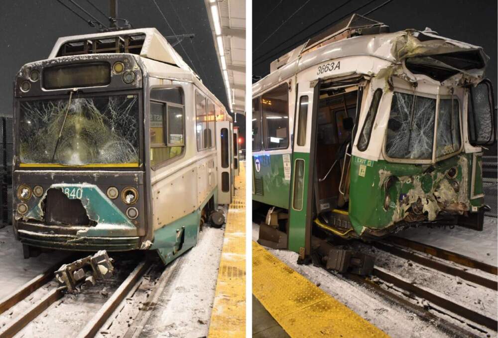 The National Transportation Safety Board on Thursday released an initial report from its ongoing investigation into the Feb. 9 collision and derailment of two MBTA trains at the East Somerville Station. The crash at around 12:20 a.m. left two passengers and four crew members with non-life-threatening injuries and the T estimated damage to its equipment at roughly $6.6 million, the NTSB said.