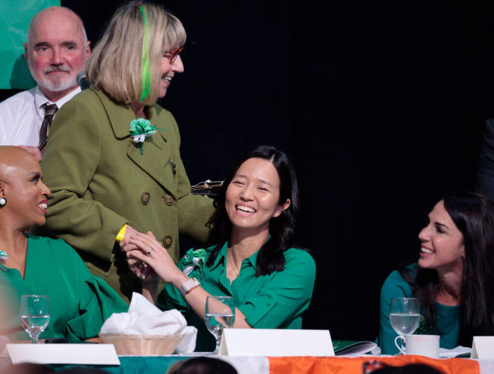 Bring on the one-liners: Self-deprecating jokes, a John Denver parody song and even a fake baby gag were among the remarks made by Massachusetts politicians at yesterday morning’s St. Patrick’s Day breakfast. However, this year’s event was a bit more somber than years past due to Massachusetts’ position on the national stage, WBUR’s Anthony Brooks reports. (Gov. Maura Healey, last year’s DunQueen, even said she wasn’t in a “jokey mood.”) Still, there were a few chuckle-worthy moments. Here are the standouts: