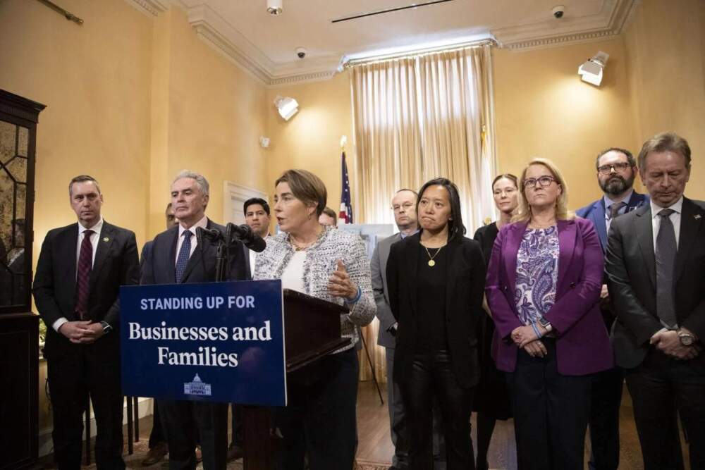 "This is why people cannot deploy capital. They can't invest in their workforce," Healey told reporters, flanked by attendees of the State House meeting she convened.