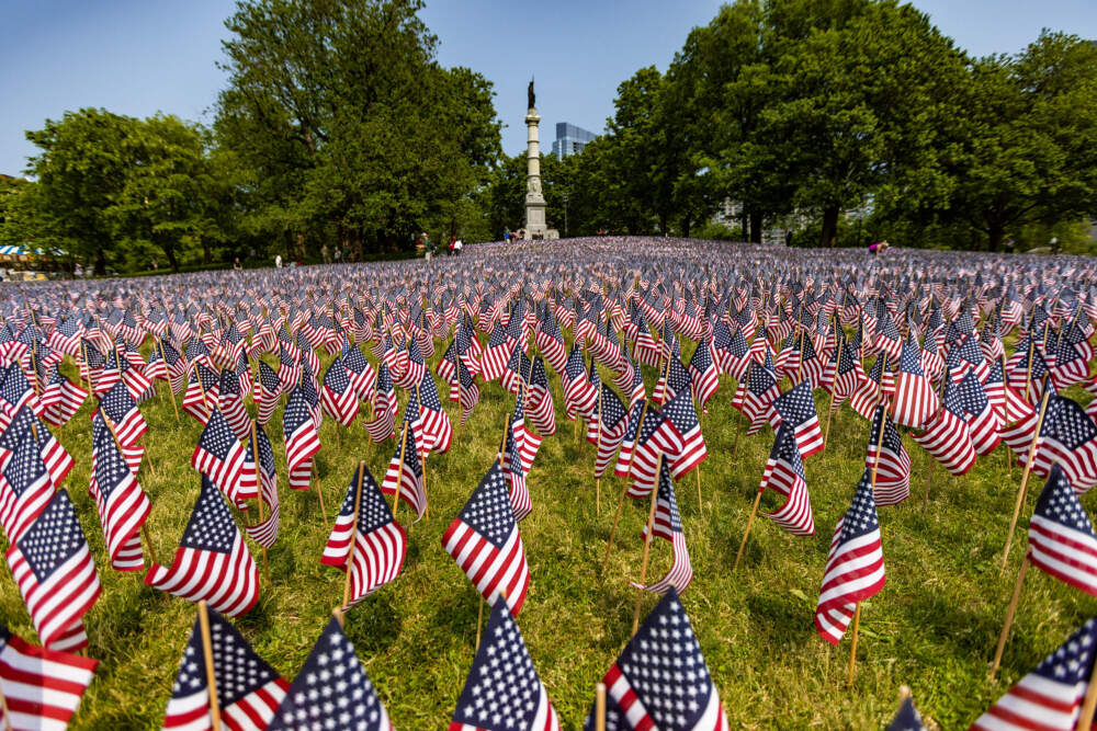 Volunteers will plant more than 37,000 American flags at the Soldiers and Sailors Monument on Boston Common in tribute to every fallen service member from Massachusetts since the Revolutionary War.