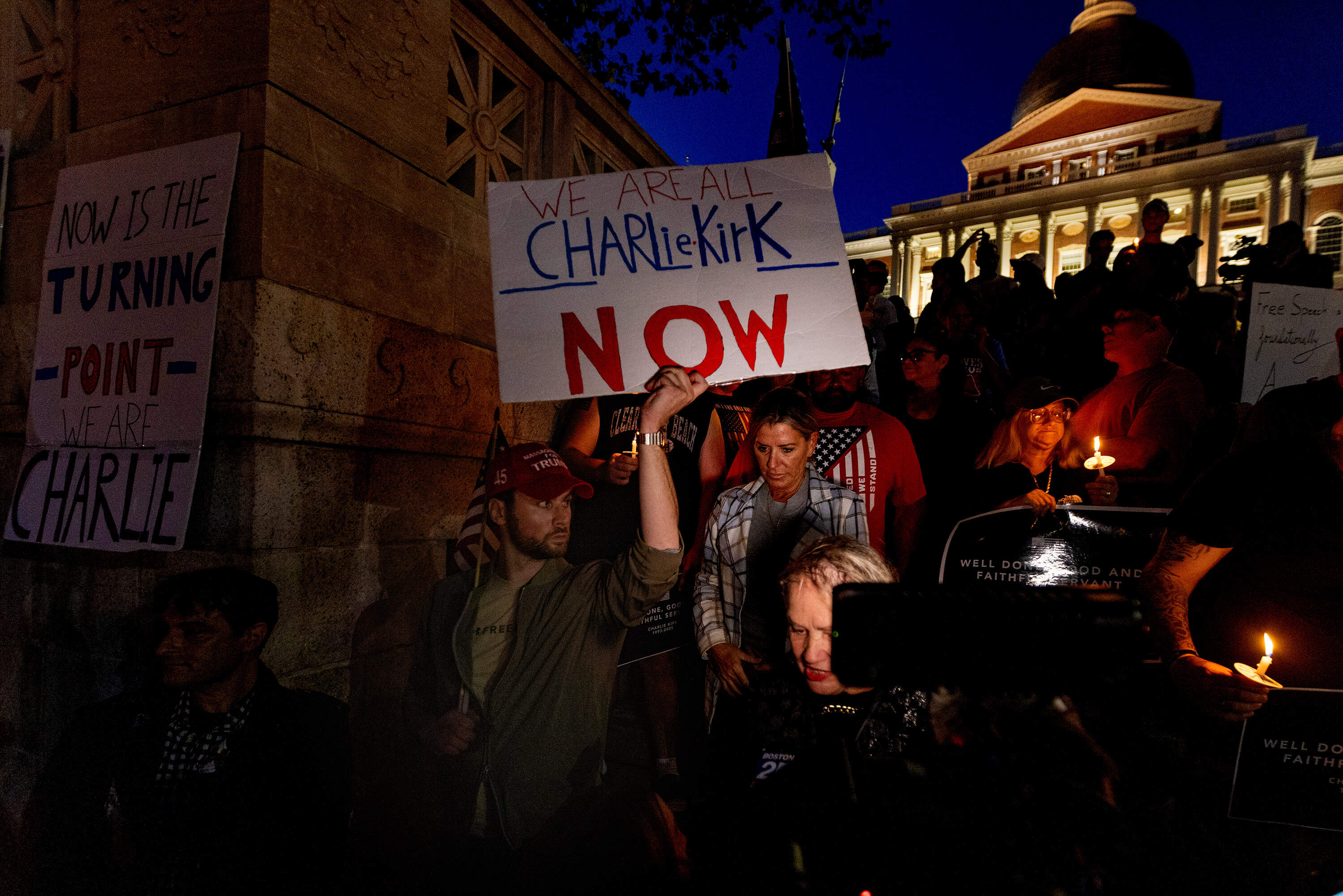 Charlie Kirk fans hold vigil in front of State House