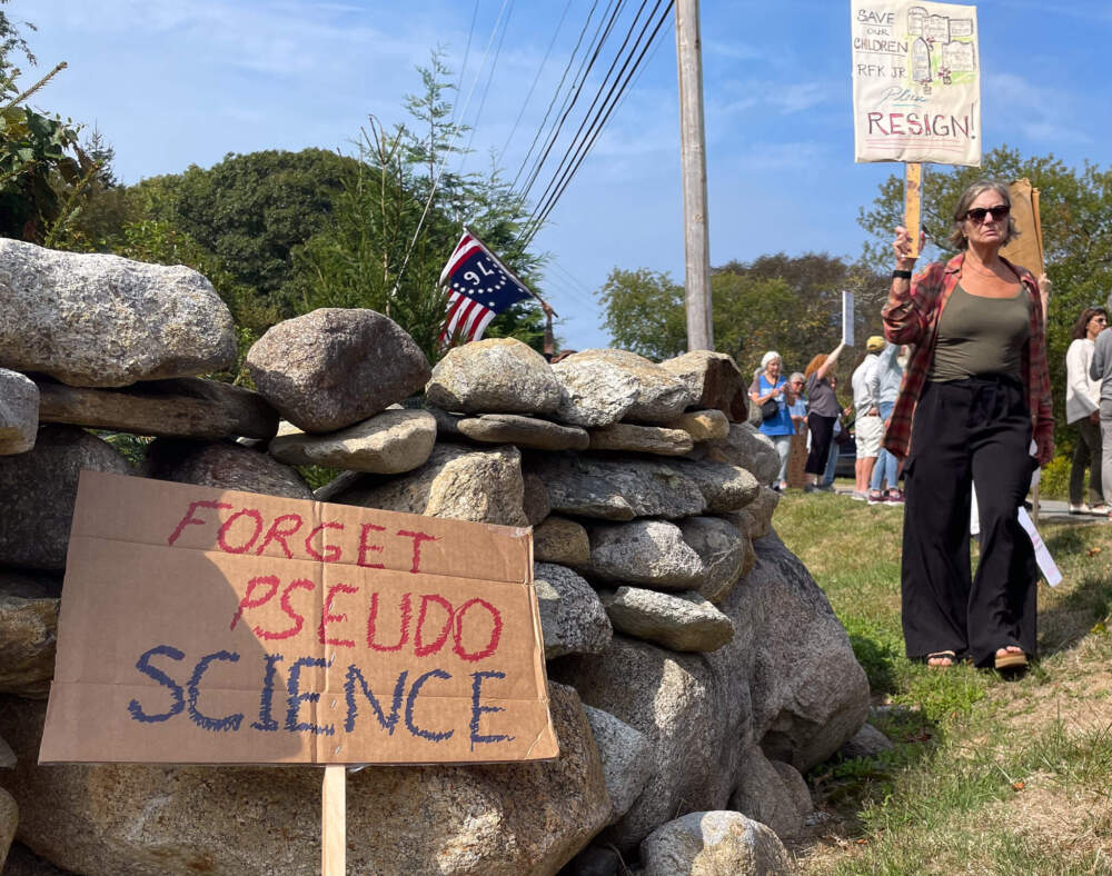 Across Martha's Vineyard on Tuesday, well over 100 people protested Health and Human Services Secretary Robert F. Kennedy Jr.'s scheduled visit and his conspiratorial opposition to vaccines.