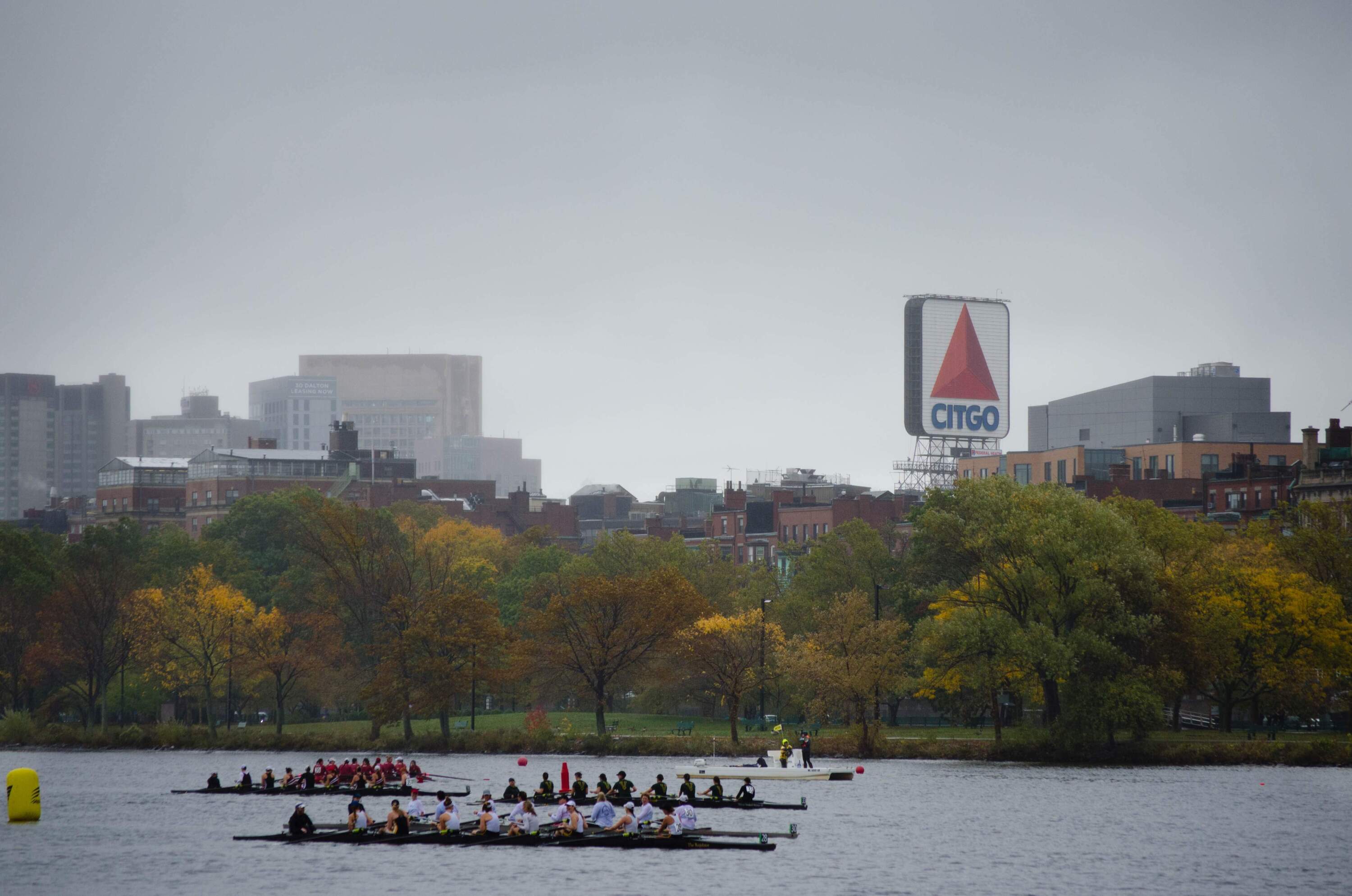 A head is a type of rowing race. Heads are typically three miles long, according to U.S. Rowing. In our case, that means these athletes are cranking those oars over and over from the BU Boathouse on Memorial Drive to Herter Park on the shores of Allston. Phew. Heads also have staggered starts, which means you won't see a bunch of boats lined up on the river like marathoners in Hopkinton. Instead, each team records a time, and the best time wins.
