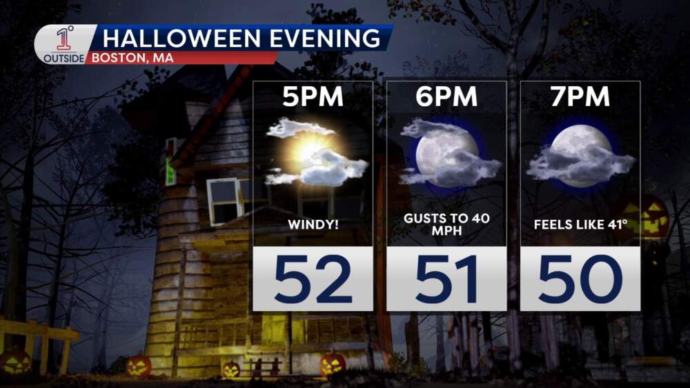With the wind factored in, around trick-or-treat time it will feel about 40 degrees. Bundle up under those costumes! It's a stark contract to last year's near record warmth — 78 degrees in Boston on Oct. 31, 2024.