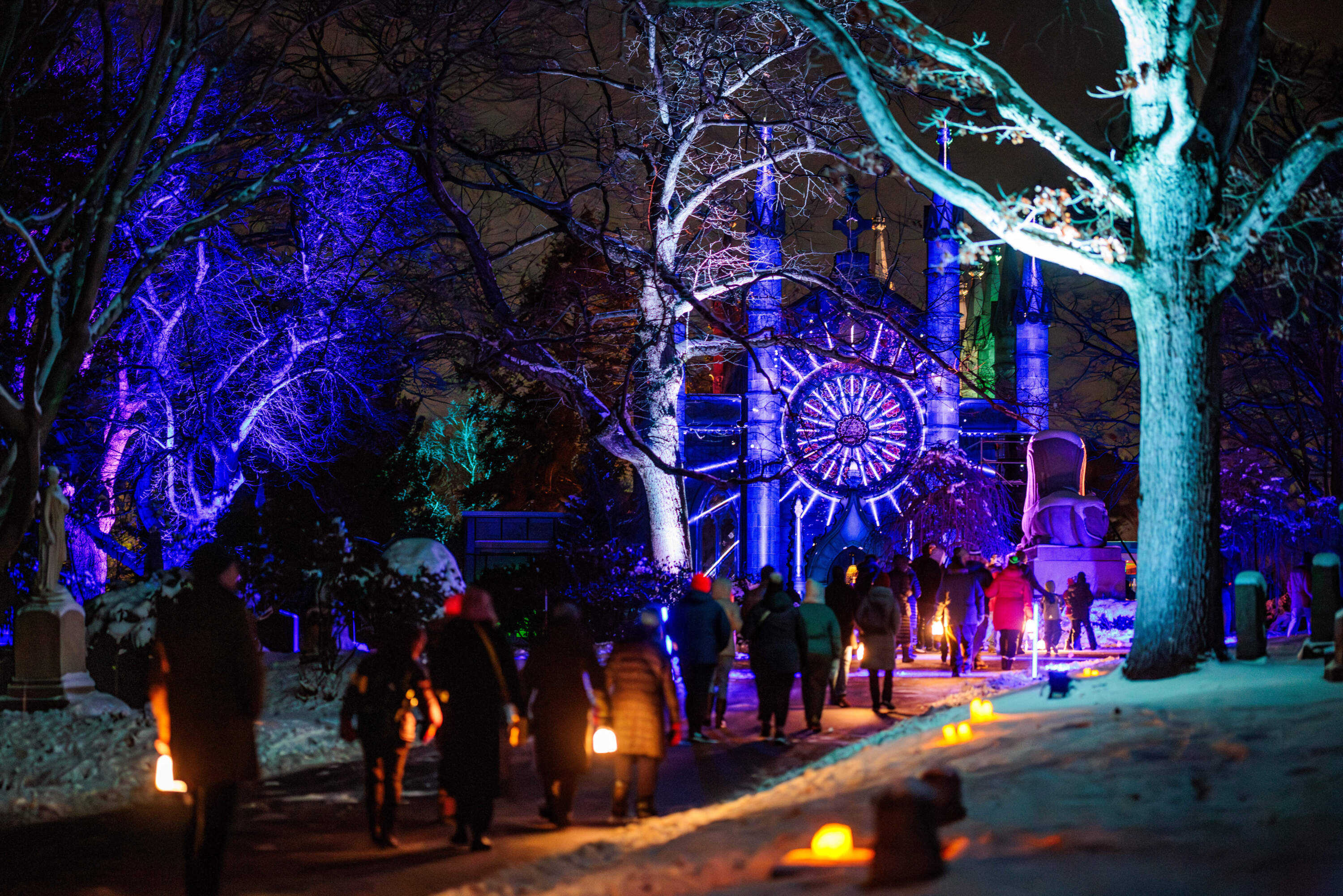 Each year, Mount Auburn Cemetery — the first U.S. garden cemetery — hosts “SOLSTICE: Reflections on Winter Light,” where eventgoers sojourn through the grounds where art, sonic experiences and nature collide. Created by artist collective MASARY, the goal of the art installation is to get visitors into nature and reflect on the year about to end. Attendees are encouraged to take their time traversing through the landscape’s lantern-lit pathways and encounter the animation works projected onto Bigelow Chapel inspired by solstice cycles. Additionally, the Hazel Dell hollow at Mount Auburn will have a projection that charts the life of a star, and on Beech Avenue, there will be a 300-foot illuminated artwork.
