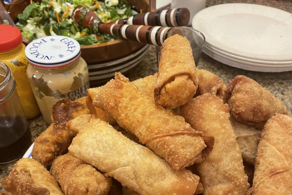 “Every year, my best friend Jessica invites her closest friends over a few days after Thanksgiving for ‘Egg Roll Day,’ where we take Thanksgiving leftovers (like turkey, mashed potatoes, stuffing, and squash), mix it together in a bowl and wrap it in egg roll wrappers. Her husband Anthony lovingly assembles the mixture and deep fries the rolls outside while we wrap. Then, we dip them in gravy and his homemade cranberry ‘duck sauce.’