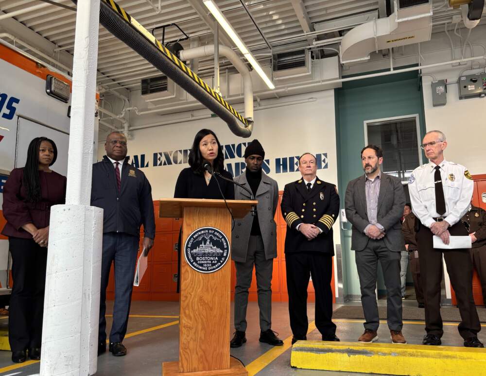 Cox spoke at the new Boston EMS training center in West Roxbury. He was joined by Boston Mayor Michelle Wu and leaders from fire, emergency services and public health departments for a year-end recap of the city’s public safety record.