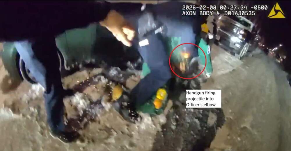 The Fall River Police Department released screenshots from body camera footage apparently showing Vaughn firing his weapon. The full video was not released.