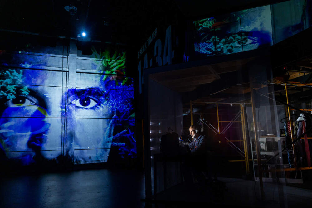 As Frank reviews content, the audience becomes immersed in the work. Photos and videos, some innocuous, others gory, racist or overtly sexual, are projected on both sides of the theater's walls, and onstage via several screens. The content envelops the audience making Frank’s work feel inescapable.