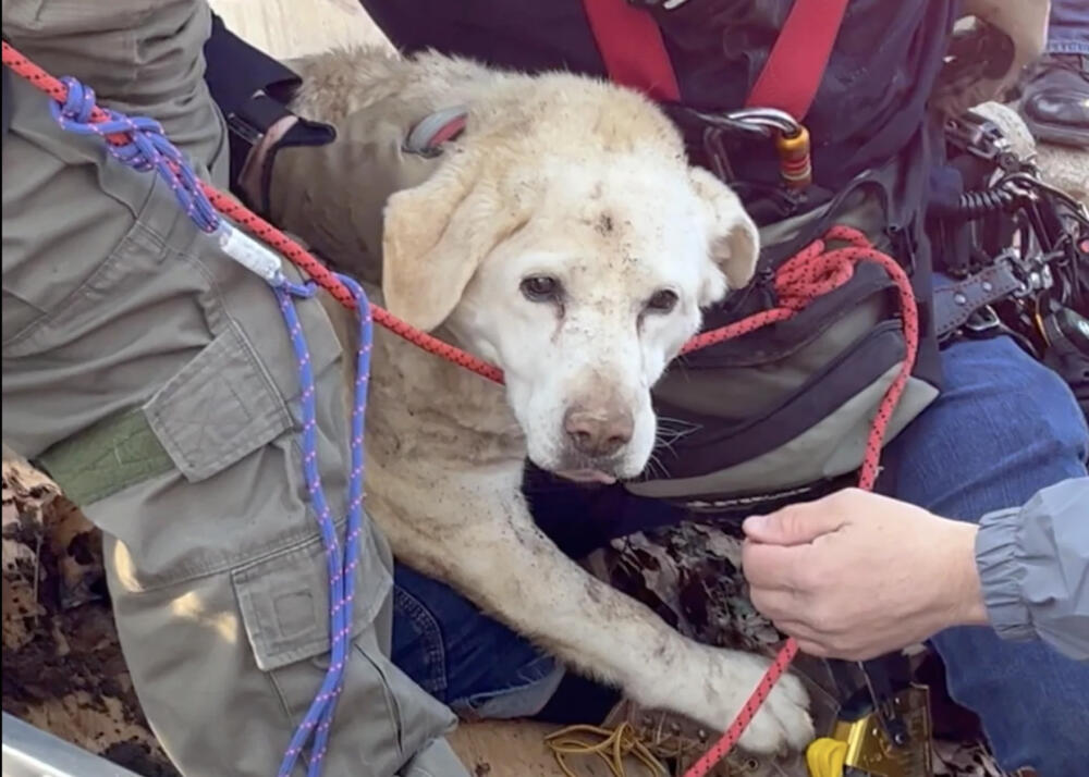 Yellow lab saved from Cape Cod sinkhole by firefighters and some pepperoni